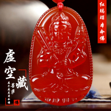 开光天然红玛瑙虚空藏菩萨生肖属牛属虎吊坠项坠守护神本命佛项链