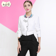 BESSIE百奢春夏新品 甜美白领长袖衬衫女修身绣花 白色雪纺衫上衣