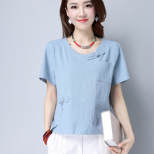 棉麻短袖衬衫女 2017夏季新款女装休闲上衣亚麻大码宽松文艺T恤女