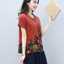 2017夏季新款短袖棉麻T恤女装圆领大码休闲宽松复古文艺亚麻上衣