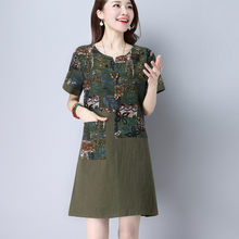 复古文艺短袖连衣裙女 2017新款胖妈妈宽松显瘦A字裙子夏装中长裙