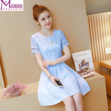 梦贝欧2017夏装新款韩版春秋学生中长款A字蕾丝连衣裙时尚女裙子