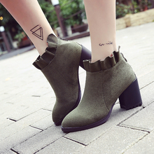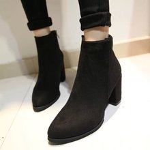 欧美秋冬尖头中高跟女鞋磨砂绒面粗跟短筒马丁靴百搭棉鞋女短靴子