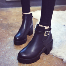 2016秋冬季中高跟厚底马丁靴粗跟搭扣高跟鞋休闲女鞋百搭女短靴子