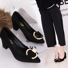 韩版秋夏尖头浅口女鞋时尚中跟百搭工作鞋粗跟女单鞋休闲鞋高跟鞋