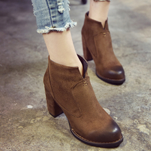 韩版秋冬季时尚粗跟舒适马丁靴磨砂休闲女鞋短筒靴高跟靴百搭短靴