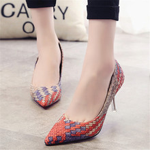 春秋时尚拼色尖头浅口女鞋细跟中跟单鞋工作鞋休闲单鞋婚鞋高跟鞋