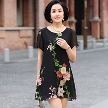宽松胖妈妈装夏装连衣裙加肥加大码中老年女装雪纺裙子夏季太太人