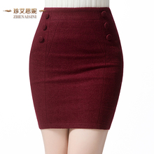 珍艾思妮秋冬款毛呢短裙包臀裙一步裙女半身裙包裙显瘦高腰加大码