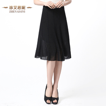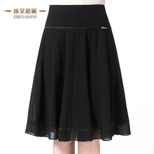 珍艾思妮雪纺半身裙夏 加大码中裙 中老年大摆及过膝裙A字裙子