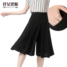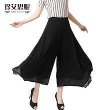 珍艾思妮雪纺七分阔腿裤女裤子2017夏款高腰宽松显瘦大码休闲裙裤