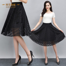 珍妮夏雪纺半身裙 妈妈装蕾丝大摆裙子 加大码休闲中裙A字裙舞裙
