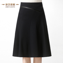 珍艾思妮毛呢不对称中长款半身裙女2017春秋摆裙OL大码A字长裙