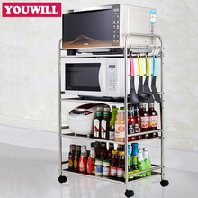 友维 不锈钢微波炉置物架落地3层厨房用具收纳架储物架厨房置物架