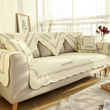 睦棉布艺四季沙发垫子全盖刺绣夏季通用现代组合坐垫简约沙发巾套