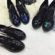2017春秋季新款韩版圆头系带平底休闲女鞋英伦复古漆皮变色单鞋女