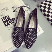 2017韩版铆钉镂空透气单鞋欧美潮流百搭春夏新款平底尖头淑女鞋女