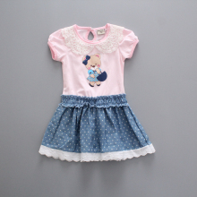 韩版蝴蝶结蕾丝裙边全棉女童短袖T恤裙衫女童夏款 M30851