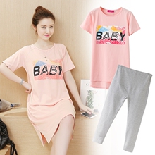 孕妇装夏装上衣短袖连衣裙2017新款韩版薄款怀孕期夏季中长款套装