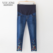 孕妇装夏装外穿托腹牛仔裤子夏季2017新款潮妈民族风绣花九分裤