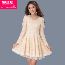 2017春季新品 蕾丝连衣裙韩版女装大码长袖修身打底裙雪纺新款