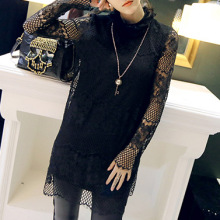 蕾丝长袖T恤女修身大码中长款立领打底衫韩版上衣女装蕾丝衫女