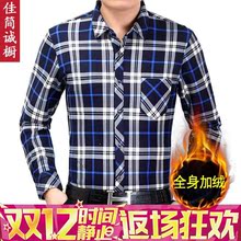天天特价加绒保暖衬衫男士加厚款老年长袖格子衬衣男中年拼接男装