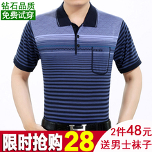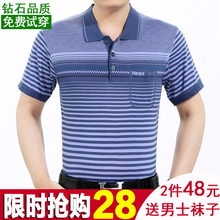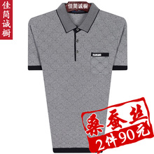 天天特价翻领中年男士短袖t恤夏装中老年男装t恤大码桑蚕丝爸爸装
