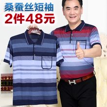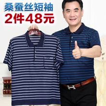 天天特价2件48元中年桑蚕丝短袖T恤男透气中老年男t恤衫送爸爸装