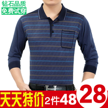 天天特价新款中年男士长袖t恤休闲男装翻领桑蚕丝薄款爸爸装春装