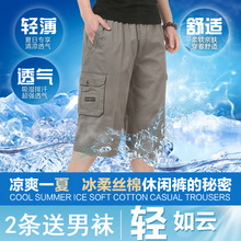 2条送男袜包邮中老年七分裤男装全棉夏装沙滩裤中年纯棉宽松中裤