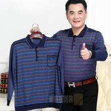【天天特价】中老年长袖男中年男士加大长袖t恤男装中年桑蚕丝T恤