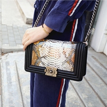 蛇纹女包2017新款链条包真皮单肩斜挎包撞色小包包百搭迷你小方包
