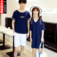 2017新款情侣装夏装休闲宽松显瘦中长款漏肩连衣裙夏季短袖T恤衫