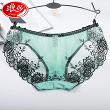 浪莎春夏新蕾丝性感内裤女无痕透明诱惑刺绣纯棉档低腰少女三角裤