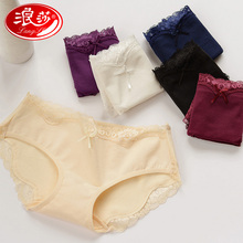 浪莎春夏女内裤性感蕾丝低腰三角裤棉质面料吸汗透气舒适女士内裤
