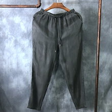 男士春夏薄款加肥加大码真丝休闲裤天丝免烫桑蚕丝小脚长裤男装