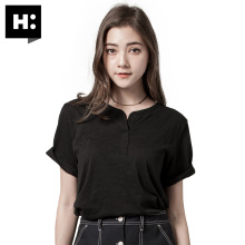 H:CONNECT2017夏季新款韩范时尚女式薄款纯棉半开领宽松短袖T恤衫