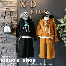喜多家品牌童装2017春装新品女童潮范儿刺绣字母连帽卫衣阔裤套装