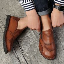 NIAN JEEP男鞋2017夏季新品牛皮休闲鞋软底舒适手工缝线套脚鞋子