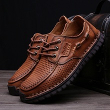 NIAN JEEP男鞋夏季镂空皮鞋男士休闲鞋厚底真皮手工透气皮鞋单鞋