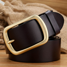 针扣皮带男士真皮铜扣纯头层牛皮青中老年腰带休闲裤带黑色款式
