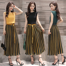 兰裳依蔻2017夏条纹圆领韩版宽松阔腿裤时尚套装28713 P95配腰带