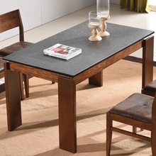 实木火烧石餐桌椅组合6人中式水曲柳餐桌长方形白蜡木火山石餐台