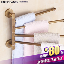 仿古卫生间毛巾架铜毛巾杆旋转双杆浴室欧式复古三杆四杆毛巾挂