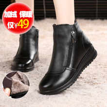 冬季妈妈鞋加绒保暖 中年女靴平底中老年短靴女 防滑老人棉鞋软皮