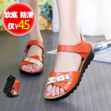 中老年妈妈凉鞋女夏软皮平底老人凉鞋女软底中年妇女凉鞋防滑大码