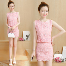 时尚套装裙2017夏季新款无袖蕾丝衫修身包臀性感半身短裙两件套女