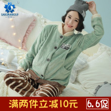 产妇外出哺乳衣珊瑚绒 月子服春冬季加厚法兰绒哺乳孕妇睡衣卡通