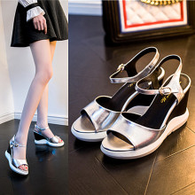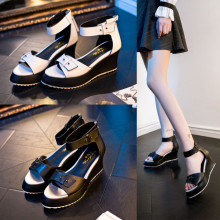 厚底鱼嘴鞋坡跟凉鞋女夏2017新款学生百搭韩版真皮松糕鞋罗马凉鞋